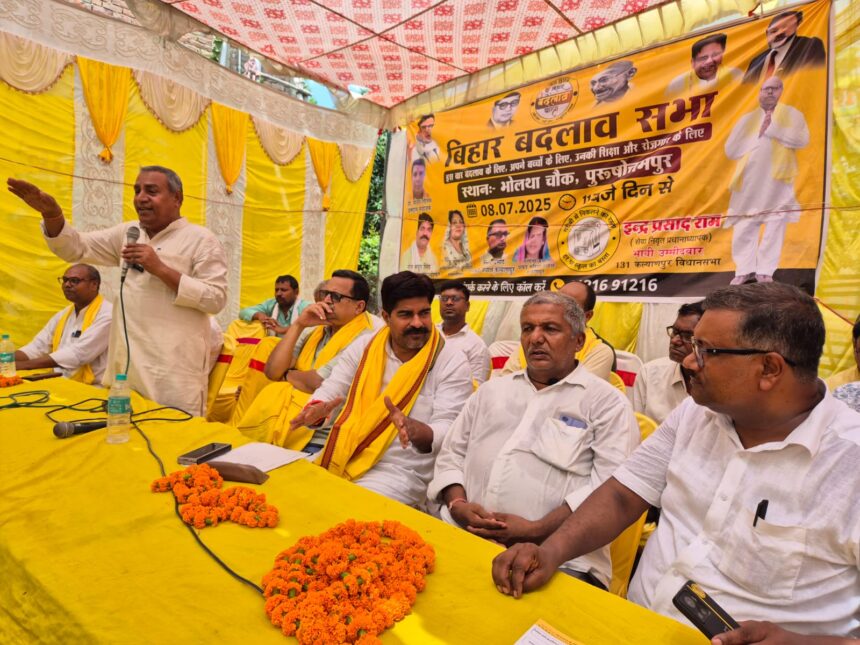 कल्याणपुर प्रखंड क्षेत्र के पुरुषोत्तमपुर पंचायत स्थित भोलथा चौक पर बिहार बदलाव को लेखक जन सुराज की बैनर तले एक सभा का आयोजन किया गया। सभा की अध्यक्षता पार्टी के प्रखंड अध्यक्ष जितेंद्र प्रसादने की वहीं संचालन निरंजन ठाकुर ने किया। दोनों भक्ताओं ने उपस्थित जनसमूह को संबोधित करते कहा कि बिहार में बदलाव की आवश्यकता है इसमें बिहार की आप मतदाताओं की अहम भूमिका होनी चाहिए। वर्तमान सरकार में स्थित आपकी कैसी है उसे पर आप स्वयं निर्णय ले। बिहार में पलायन शिक्षा आदि पर विस्तृत चर्चा की गई । वक्ताओं में आगामी विधानसभा उम्मीदवार इंद्र प्रसाद राम राम बालक पासवान अजब लाल सहनी के अलावे मुख्य अतिथि पार्टी के जिला अध्यक्ष राज कपूर आदि ने संबोधित किया। पार्टी के जिला अध्यक्ष ने अपने संबोधन में पार्टी के मुखिया प्रशांत किशोर द्वारा बिगत 2 वर्षों से बिहार में बदलाव को लेकर लगातार पैदल यात्रा की गई जगह-जगह काफी संख्या में उनकी सभा में लोग जुटते थे। उनका मुख्य उद्देश्य है बिहार में बदलाव हो जिससे बिहार की तरक्की हो बिहार की तरक्की होगी बिहार की जनता आत्मनिर्भर होगी भ्रष्टाचार मुक्त होगा। सभा में काफी संख्या में कई गांव के लोग मौजूद थे। धन्यवाद ज्ञापन प्रखंड अध्यक्ष श्री प्रसाद ने किया।