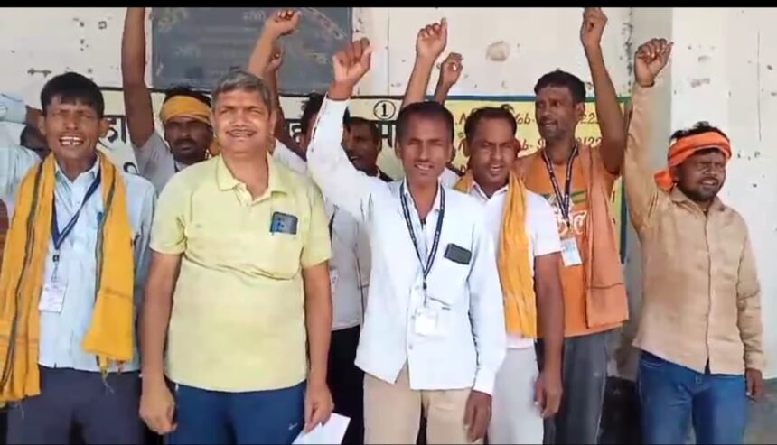 प्रखंड मुख्यालय में स्थित बिहार राज्य खाद्य निगम के गोदाम में विगत 5 माह से मजदूरी न मिलने से आक्रोशित मजदूरों ने बुधवार को कार्य बाधित कर प्रदर्शन किया । जिसका नेतृत्व बिहार राज्य श्रमिक कामगार यूनियन के जिला सचिव चंदेश्वर पासवान ने किया ।प्रदर्शन में शामिल श्रमिक शिवचंद प्रभाकर, विकास कुमार ,जयप्रकाश , महेंद्र कुमार ,शैलेंद्र कुमार ,विजय पासवान, सुदेश्वर पासवान , इस्लाम मियां,सुभाष चौहान, उमाशंकर पासवान,मनोज कुमार, जितेंद्र पासवान, प्रमोद पासवान ,राजाराम पासवान, धर्मेंद्र पासवान,दीपू कुमार, राधेश्याम पासवान, दिनेश पासवान ने बताया कि विगत 5 माह से उन्हें मजदूरी नहीं दी जा रही है । जिसकी वजह से उनके परिवार में भुखमरी की स्थिति उत्पन्न हो गई है । उन्होंने बताया कि सरकार द्वारा निर्धारित मजदूरी प्रति बैग 11रुपया 64 पैसा है। जबकि संवेदक द्वारा उन्हें 9 की राशि दी जाती है । 5 माह से बकाया मजदूरी की राशि के लिए उन्हें परेशान किया जा रहा है ।कई मजदूरों ने बताया कि गोदाम के समीप मजदूरों को विश्राम के लिए शेड़ और पेयजल की व्यवस्था नहीं की गई । जिसकी शिकायत जिला प्रबंधक से कई बार की गई लेकिन कोई कार्रवाई नहीं की गई । उन्होंने बताया कि अधिकारियों की मिली भगत से संवेदक उनकी मजदूरी का भुगतान नहीं कर रहा है और नहीं दुर्घटना बीमा व चिकित्सा बीमा की राशि । उन्होंने बताया कि अगर उनकी मांगों पर विचार नहीं किया गया तो कार्य बाधित कर अनिश्चितकालीन धरना देंगे।