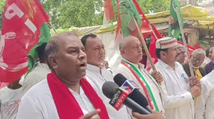 निर्वाचन आयोग द्वारा विधानसभा चुनाव के पूर्व दिए गए मतदाता पुनरीक्षण आदेश के विरुद्ध बुधवार को महागठबंधन के कार्यकर्ताओं ने थाना के सामने जमकर प्रदर्शन किया। सरकार के विरुद्ध नारेबाजी करते हुए सासाराम चौसा पथ को जाम कर दिया। जिसे यातायात बाधित हो गया । जिसका नेतृत्व सीपीआई नेता महेंद्र प्रसाद गुप्ता ने किया ।आरजेडी, कांग्रेस और सीपीआई के नेताओं ने बताया कि युक्त मतदाता सूची के आधार पर विगत लोकसभा का चुनाव संपन्न कराया गया । लेकिन विधानसभा चुनाव के पूर्व मतदाता पुनरीक्षण कार्य किया जा रहा है । जिसमें गरीब मतदाताओं को मताधिकार से वंचित करने की साजिश है। इस काले कानून का महागठबंधन विरोध करता है। 2 घंटे तक सड़क जाम के बाद वाहनों का परिचालन शुरू हुआ।मौके पर राजद नेता शकील अहमद , सुशील मिश्रा ,डॉ जय गोपाल सिंह, जग नारायण प्रसाद, रामचंद्र राम , श्री राम राय आदि शामिल थे ।