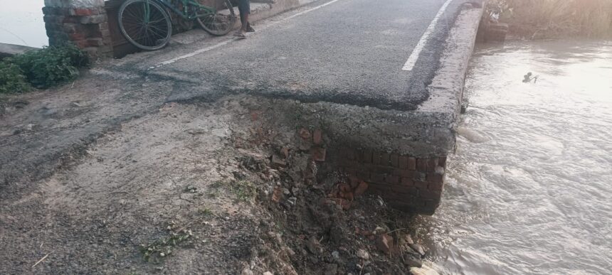 खुड़हुरिया गांव के समीप सड़क निर्माण कंपनी द्वारा नया पुल बनाने की जगह वर्षों पूर्व निर्मित सिंचाई फाल पर यातायात प्रारंभ कर दिया। जो वाहनों के परिचालन से क्षतिग्रस्त हो गया है । फल स्वरुप एक दर्जन गांवों का संपर्क सासाराम चौसा पथ से कट गया है ।ग्रामीणों ने बताया कि खुड़हुरियां गांव के समीप चेत पांडेय नाला में किसानों ने चंदा इकट्ठा कर सिंचाई फाल का निर्माण किया था । जिससे सैकड़ो एकड़ भूमि में सिंचाई का कार्य किया जाता था । वर्ष 2018 में ग्रामीण सड़क निर्माण विभाग द्वारा कच्ची सड़क को डिभियां स्थित सासाराम चौसा पथ से बडहरी पथ में स्थित रतिचक गांव तक पक्की सड़क निर्माण कार्य शुरू किया । लेकिन निर्माण कंपनी द्वारा सड़क के विपरीत दिशा में पानी निकासी के लिए पुल- पुलिया का निर्माण कार्य नहीं किया । पानी निकासी नहीं होने के कारण सड़क के पूर्वी भाग में जल जमाव की स्थिति बनी रहती है। जिससे सैकड़ो एकड़ भूमि में लगी धान की फसलें सड़ कर बर्बाद हो जाती हैं । उक्त पथ में जल जमाव की समस्या को दूर करने के लिए भूल पुलिया निर्माण को लेकर किसानों ने ग्रामीण सड़क निर्माण विभाग से कई बार शिकायत की लेकिन कोई कार्रवाई नहीं की गई ।किसानों ने बताया कि सड़क निर्माण विभाग की लापरवाही से डिभियां गांव में 200 एकड़ , खुड़हुरिया, सोन वर्षा ,नारायणपुर , गोपालपुर और कपटियां गांवों में 500 एकड़ भूमि जल जमाव से प्रभावित है । उन्होंने बताया कि निर्माण कंपनी द्वारा पुल निर्माण की जगह कपटियां गांव के समीप स्थित रसूलपुर राजवाहा पर निर्मित नहर पुल तथा खुड़हुरिया गांव के समीप सिंचाई फाल को सड़क पुल के रूप में शामिल कर लिया । सड़क मार्ग में वाहनों के परिचालन से वर्षों पूर्व निर्मित नहर पुल व सिंचाई फाल क्षतिग्रस्त हो गया। जिससे आधा दर्जन से अधिक गांवों का संपर्क मुख्य पथ से कट गया है ।कई किसानों ने आरोप लगाया कि ग्रामीण कार्य विभाग के अधिकारियों द्वारा सड़क निर्माण के दौरान जल निकासी के लिए पुल पुलिया निर्माण का प्राक्कलन तैयार किया था या नहीं इसकी जानकारी नहीं है लेकिन सड़क निर्माण कंपनी द्वारा वर्षों पुराना नहर पुल और सिंचाई फाल को सड़क पुल में शामिल कर लिया गया । उन्होंने आरोप लगाया कि निर्माण कंपनी द्वारा पुराना पुल को ही नवनिर्मित पुल दिखाकर राशि का गबन किया हो। जो जांच का विषय है । उन्होंने बताया कि इसके अलावे डिभियां से गोपालपुर गांव तक जल निकासी के लिए सड़क मार्ग में एक भी नाला नहीं डाला गया है । जिससे जल जमाव की समस्या उत्पन्न हुई है । उन्होंने जिलाधिकारी से मांग किया है कि उक्त पथ में जल निकासी के लिए पुल पुलिया का निर्माण कराया जाए ताकि जल जमाव की समस्या से निजात मिल सके ।इस संबंध में ग्रामीण कार्य विभ