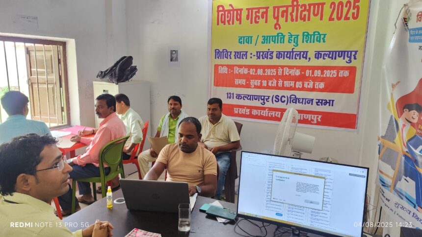 कल्याणपुर विशेष गहण पुनरीक्षण 2025 के प्रारूप मतदाता सूची के प्रकाशन के उपरांत, जो भी मतदाता या अन्य मतदाता बनने वाले व्यक्ति अपना दावा आपत्ति अपने संबंधित बीएलओ के यहां दे सकते हैं। खुद ऑनलाइन कर सकते हैं उक्त बातें प्रखंड विकास पदाधिकारी देवेंद्र कुमार ने देते हुए आगे बताया कि अगर किसी प्रकार की कोई दिक्कत है तो प्रखंड में विशेष कैंप का आयोजन किया गया है, वहां भी अपना जानकारी ले सकते हैं यह दावा आपत्ति दे सकते हैं। सुबह 10:00 बजे से 5:00 तक दावा आपत्ति किया जा सकता है उसके लिए विशेष काउंटर बनाए गए हैं नाम जोड़ने व अन्य संशोधन करने के लिएप्रखंड कार्यक्रम पदाधिकारी मनरेगा महेश कुमार भगत वं प्रखंड परियोजना प्रबंधक जीविका नोडल प्रभारी बनाये गयेहै उनके साथ टीम को प्रतिनियुक्त किया गया है। ऑपरेटर का टीम दिया गया है ताकि फॉर्म ऑनलाइन किया जा सके।