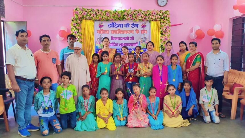 आदर्श प्रा वि दौलतपुर उर्दू वारिसनगर में विद्यालय के बच्चों के द्वारा ” डांडिया के रंग महिला सशक्तिकारण के संग ” नाटिका प्रस्तुत किया गया । कार्यक्रम का संयोजन शिक्षिका सुरैया परवीन ने किया । इस मौके पर विद्यालय के प्रधानाध्यापक श्री संजीत भारती ने कहा कि नवरात्र का यह पर्व हमें सदा सही रास्ते पर चलने की सीख देता है। इसमें परंपरा, संस्कृति और शिक्षा का सुंदर समन्वय देखने को मिलता है। शिक्षक विभाष सोनी ने कहा कि बच्चों के लिए पढ़ाई के साथ साथ खेल व उत्साह जरूरी है, जीवन में पर्व त्यौहार का समावेश इसी उद्देश्य से किया गया है।कार्यक्रम का आकर्षण डांडिया नृत्य बना और सभी को अभिभूत किया जिसमें विद्यालय के बच्चें रौकसिंदा, मुस्कान ,शिवानी,आंचल, अनुष्का,साक्षी,सोनी,आयान,कृष्णा, मुन्ना फैजान ने पूरे उत्साह से भाग लिया। इस मौके पर फहीम नाज़,सूफिया गुलनाज अंजुम, मोएजाजअख्तर ,रोहित ,ज्योती, मीरा , एकराम एवं मो एजाज उपस्थित थे।