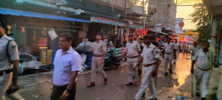 कल्याणपुर अंचल पदाधिकारी शशि रंजन व स्थानीय पुलिस थाना अध्यक्ष राकेश कुमार शर्मा की नेतृत्व में दुर्गा पूजा को लेकर क्षेत्र में शांति व्यवस्था कायम रहे पुलिस बल के साथ फ्लैग मार्च निकाला। थाना परिसर से निकली फ्लैग मार्च कल्याणपुर मिर्जापुर चौक ध्रुवगामा रतवारा रामभद्रपुर तीरा पुलिस बल के साथ घूमती हुई थाना पहुंची। वहीं दूसरी ओर चकमहेसी थाना अध्यक्ष मनीष कुमार के नेतृत्व में सैदपुर चौक कुशियारी रतनपुर सोरमार रामापुर पुलिस बल के साथ गई। थाना अध्यक्ष ने बताया कि फ्लैग मार्च के निकलने से अपराधिक प्रवृत्ति के लोगों में पुलिस के भय का माहौल होता है।
