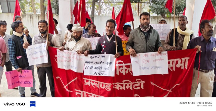 ताजपुर/समस्तीपुर अखिल भारतीय किसान महासभा के बैनर तले किसानों ने जुलूस निकालकर कृषि एवं प्रखंड कार्यालय पर धरना-प्रदर्शन किया।बुधवार को बड़ी संख्या में अखिल भारतीय किसान महासभा से जुड़े किसानों ने अपने-अपने हाथों में झंडे, बैनर एवं मांगों से संबंधित नारे लिखे तख्तियां लेकर राजधानी चौक से जुलूस निकाला। जुलूस नारे लगाकर मुख्य मार्ग से गुजरते हुए प्रखंड परिसर में प्रवेश कर कृषि कार्यालय पर पहुंचकर जमकर प्रदर्शन किया। इस दौरान किसान बहुत देर तक नारेबाजी करते रहे। कृषि पदाधिकारी युगल प्रसाद मेहता के बुलावे पर 15 सूत्री मांगपत्र सौंपकर अविलंब कारवाई करते हुए कृत कारवाई से अवगत कराने की मांग की।जुलूस पुनः नारे लगाते हुए प्रखंड कार्यालय के समक्ष जमकर प्रदर्शन किया। इस दौरान किसान बहुत देर तक मांगों से संबंधित नारेबाजी करते रहे। पुनः 15 सूत्री स्मार-पत्र के माध्यम से किसान प्रतिनिधिमंडल ने मोथा तुफान में बर्बाद हुए फसलों का मुआवजा देने, धान पर 1000 रूपए बोनस देकर धान खरीद करने, खाद की कालाबाजारी पर रोक लगाने, नकलीखाद-बीज-कीटनाशक बिक्री पर रोक लगाने, सिंचाई संसाधनों का जीर्णोद्धार करने, कृषि भूमि का अधिग्रहण पर रोक लगाने, कृषि फीडर की व्यवस्था कर खेत तक बिजली पहुंचाने, केसीसी लोन माफ करने, सब्जी विक्रेताओं के लिए वेंडिंग जोन बनाने, केसीसी लोन माफ करने, बाजार क्षेत्र की सड़कों की मापी कराकर निष्पक्ष रूप से कच्चा एवं पक्का अतिक्रमण हटाने, पशुपालकों के दूध की कीमत बढ़ाने, ताजपुर को मशाला उत्पादक प्रखंड घोषित कर मशालें की बीज-खाद-कृषि यंत्र नि: शुल्क देने, मोतीपुर सब्जी मंडी के आसपास हरी सब्जियां रखने वाले कोल्ड स्टोरेज बनाने आदि मांगों से संबंधित मांगपत्र बीडीओ रवि भूषण को सौंपकर तत्काल कारवाई करने एवं कृत कारवाई से अवगत कराने अन्यथा आंदोलन तेज करने की चेतावनी दी।प्रतिनिधिमंडल में किसान नेता संजीव राय, ललन दास, मो० एजाज, पैक्स अध्यक्ष आसिफ होदा, भाकपा माले के प्रखंड सचिव सुरेंद्र प्रसाद सिंह आदि मौजूद थे। कार्यक्रम में राजदेव प्रसाद सिंह, शंकर महतो, मो० शकील, मनोज साह, मो० रहमान, चांद बाबू, अनील सिंह, महावीर प्रसाद सिंह, दिनेश प्रसाद सिंह, मकसुदन सिंह, मुंशीलाल राय, आइसा जिला सचिव सुनील कुमार समेत बड़ी संख्या में किसान मौजूद थे।