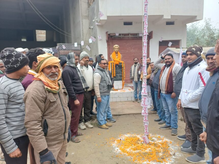 कल्याणपुर भारत की जनवादी नौजवान सभा कल्याणपुर के बैनर तले शहिद कामरेड उमेश महतो के 27 वें शहादत दिवस के अवसर पर श्रद्धांजलि सभा का आयोजन, समस्तीपुर नगर निगम वार्ड संख्या 09 के चंद्रपुर गांव में राघवेंद्र यादव के अध्यक्षता में किया गया।मौके पर डी0वाई0एफ0आई के जिला अध्यक्ष महेश कुमार द्वारा झंडा तोलन किया गया। वक्ताओं ने एक साथ राज्य और केंद्र के डपोरशंखी सरकार की आलोचना करते हुए कहा कि, वर्तमान सरकार नौजवान विरोधी है।रोजगार विरोधी है ,सरकार के पास नौजवान के रोजगार के लिए कोई नीति नहीं है। राज्य में व्यापक भ्रष्टाचार ,अपराध हत्या एवं बलात्कार की घटनाएं लगातार घट रही है। लेकिन सरकार का इस पर कोई नियंत्रण नहीं है ।इसके लिए नौजवानों को एकजुट होकर सरकार के नीति के खिलाफ संघर्ष करने की जरूरत है।सभा को राघवेंद्र यादव ,भोला राय , महेश कुमार ,उमेश शर्मा, सत्यनारायण सिंह, शिवनाथ महतो, महेश कुमार ,पुष्पम जी ,रामाश्रय महतो, संजय कुमार, विष्णु देव शर्मा, रंजन पासवान ,प्रदीप झा ,सुरेंद्र पासवान, रंजीत राय ,हरिवंश राय, सतीश प्रसाद सिंह ,शिव कुमार गुप्ता ,जहांगीर मुन्ना, आदि लोगों ने संबोधित किया।