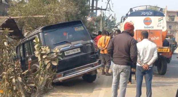 समस्तीपुर से आ रही है जहां तेज़ रफ़्तार का कहर देखने को मिला है। तेल टैंकर और स्कार्पियो में सीधी टक्कर हो गयी है जिसमे स्कार्पियो का परखच्चे उर गयी है वही राहत की बात ये है कि इस हादसे में किसी के हताहत होने की खबर नही है।स्कार्पियो सवार सभी लोगो को हल्की चोटे आयी है जिनको निजी अस्पताल में इलाज के लिए भेजा गया है।वही पुलिस घटनास्थल पर पहुच कर आगे की कारवाई में जुट गई है।फिलहाल स्कार्पियो सवार कहा के रहने वाले है और कहा जा रहे थे वो अभी तक स्पष्ट नही हो पाया है।घटना मुफ्फसिल थाना छेत्र के समस्तीपुर रोसड़ा मार्ग के विशनपुर मल्लाह टोली मोरदिवा की है।