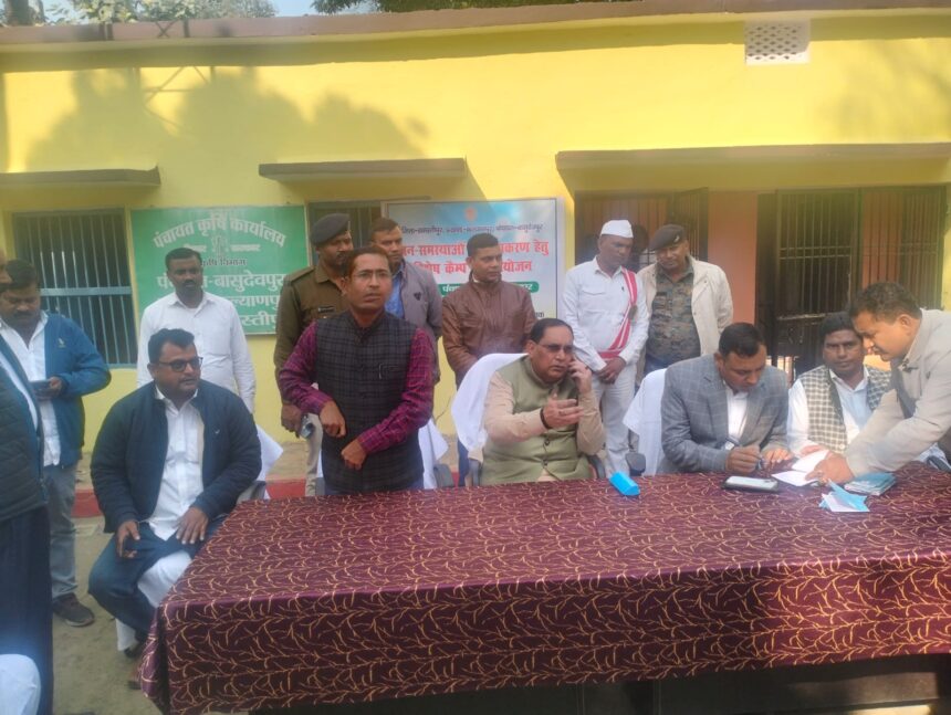 कल्याणपुर प्रखंड के वासुदेवपुर पंचायत भवन परिसर में शुक्रवार को बिहार सरकार के सुचना प्रसारण मंत्री सह स्थानीय विधायक महेश्वर हजारी ने पहुंचकर कर प्रखंड के वासुदेव पुर में विभिन्न विभागों के द्वारा शिविर लगाया गया। जहां मंत्री के पहुंचे पर भारत के पुर्व प्रधानमंत्री मनमोहन सिंह की आकस्मिक निधन होने पर मंत्री ने श्रद्धांजलि देते हुए एक मिनट का मौन रखा गया। श्रद्धांजलि सभा में सदर अनुमंडल पदाधिकारी दिलीप कुमार प्रखंड विकास पदाधिकारी देवेंद्र कुमार, अंचल पदाधिकारी शशि रंजन, मनरेगा पीओ महेश कुमार भगत,स्थानीय मुखिया चंदन कुमार पुर्व मुखिया चंद्रगुप्त शर्मा, जदयू के प्रखंड अध्यक्ष राजकुमार सिंह युवा प्रखंड अध्यक्ष सामंत कुमार,चंद्र प्रकाश गुड्डू, , राजीव कुमार सिंह उर्फ पिंटू सिंह भाजपा के पुर्व मुखिया संघ अध्यक्ष विजय शर्मा, अखिलेश ठाकुर,पूर्व मुखिया रघुनंदन पासवान, सीपीएम के भोला राय राघवेंद्र राय जनवादी नौजवान सभा के जिला सचिव उमेश शर्मा, राजद के अजय कुमार साहनी, सहित अन्य महिला पुरुष ग्रामीण में मैजुद थे । बता दे की वस्त्रैपुर पंचायत भवन पर।