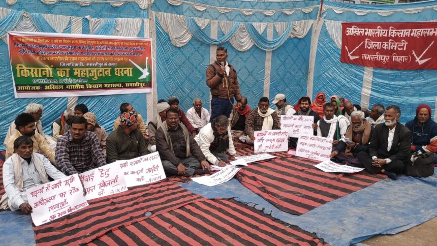 समस्तीपुर सिंचाई संसाधनों का जीर्णोद्धार एवं नये का निर्माण करने, प्रीपेड मीटर पर रोक लगाने एवं किसानों को नि: शुल्क बिजली देने, एपीएमसी, खाद्य सुरक्षा, कर्ज मुक्ति, कृषि मंडियों की पुनः बहाली, भूमि सर्वे एवं कृषि भूमि अधिग्रहण पर रोक लगाने, एनपीएफएएम को वापस लेने, ताजपुर- बख्तियारपुर फोरलेन सड़क पर आहर में अंडरपास एवं पुलिया बनाने आदि मांगों को लेकर शुक्रवार को अखिल भारतीय किसान महासभा के बैनर तले बड़ी संख्या में किसानों ने समाहरणालय पर धरना दिया।धरना स्थल पर अपनी मांगों के समर्थन में किसानों द्वारा जोरदार नारेबाजी के बाद एक सभा का आयोजन किया गया। सभा की अध्यक्षता जिलाध्यक्ष महावीर पोद्दार ने किया। संचालन जिला सचिव ललन कुमार ने किया। सभा को किसान महासभा जिला कमिटी के सदस्य ब्रह्मदेव प्रसाद सिंह, मनोज कुमार सिंह, सुनील कुमार, रवींद्र सिंह, कपिल देव महतो, रामकुमार राय, सीताराम राय, विन्देश्वर राय, कुंदन राय, भाकपा माले के जिला सचिव उमेश कुमार, जिला कमिटी सदस्य सुरेंद्र प्रसाद सिंह, अनील चौधरी, खेग्रामस के जीबछ पासवान एवं उपेंद्र राय, अर्जुन दास, मो० सकुर, सोनेलाल पासवान, अधिवक्ता ब्रजकिशोर चौहान, महताब आलम आदि ने सभा को संबोधित करते हुए राज्य एवं केंद्र सरकार पर किसानों को अनदेखी का आरोप लगाया।अंत में अन्नदाताओं की समस्याओं से संबंधित 17 सूत्री जिलाधिकारी के नाम संबोधित स्मार-पत्र सौंपकर मांगों को पूरा करने अन्यथा आंदोलन तेज करने की घोषणा की गई।