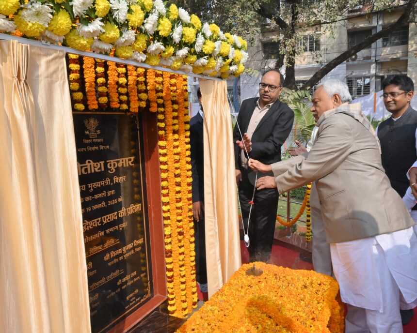 पटना 19 जनवरी 2025 :- मुख्यमंत्री श्री नीतीश कुमार ने बहादुरपुर हाउसिंग कॉलोनी,सेक्टर-7 स्थित पार्क में त्रिपुरा के पूर्व राज्यपाल स्व० सिद्धेश्वर प्रसाद जी की आदमकद प्रतिमा का अनावरण किया। इसके पश्चात् मुख्यमंत्री ने स्व० सिद्धेश्वर प्रसाद जी की प्रतिमा पर पुष्प अर्पित कर अपनी श्रद्धांजलि दी और नमन किया।