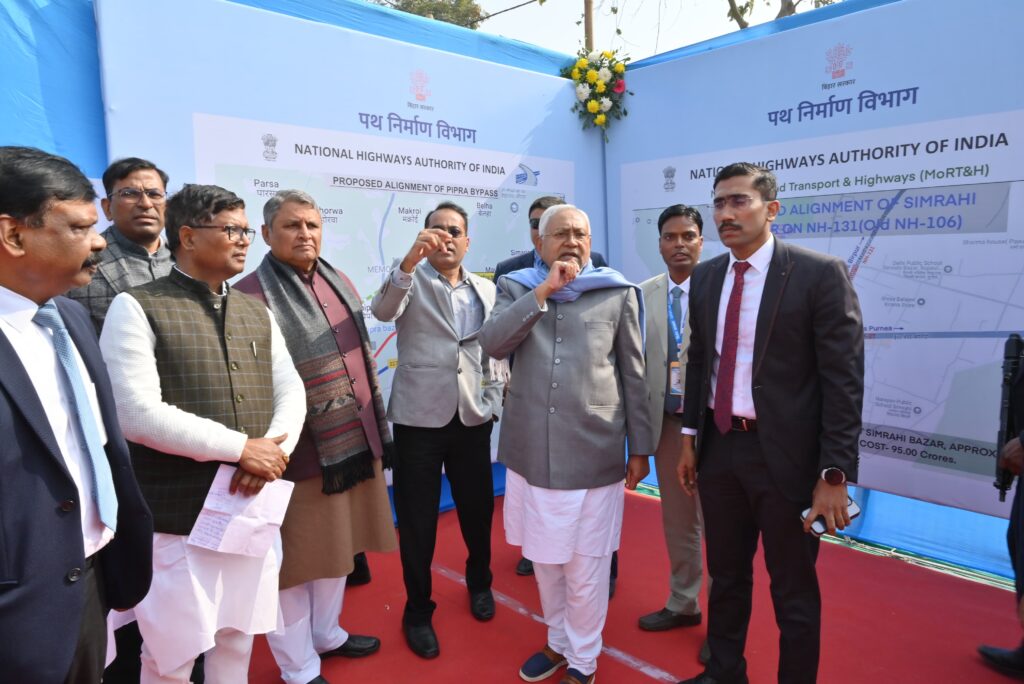 मुख्यमंत्री ने रिमोट के माध्यम से सुपौल जिला के विकासात्मक कार्यों का उद्घाटन एवं शिलान्यास किया।इसके पश्चात् मुख्यमंत्री ने त्रिवेणीगंज मुख्य बाजार में प्रस्तावित बाईपास का स्थलीय निरीक्षण किया। इस दौरान अधिकारियों ने मुख्यमंत्री को रेखाचित्र के माध्यम से बाईपास निर्माण कार्य के संबंध में जानकारी देते हुए बताया कि इसकी लंबाई 6 कि०मी० है और इसकी प्राक्कलित राशि 50 करोड़ रुपये है। इसके पश्चात् मुख्यमंत्री ने प्रस्तावित पिपरा बाजार बाईपास का भी स्थलीय निरीक्षण किया। प्रस्तावित पिपरा बाईपास बाजार के बारे में अधिकारियों ने मानचित्र के माध्यम से मुख्यमंत्री को बताया कि इसकी लंबाई 6 कि०मी० होगी और इसकी प्राक्कलित राशि 50 करोड़ रुपये होगी। साथ ही अधिकारियों ने मुख्यमंत्री को बताया कि ईस्ट-वेस्ट कॉरिडोर से जोड़ने के लिए सिमराही बाजार में 1.2 कि०मी० लंबाई का फ्लाईओवर भी बनाया जाएगा, जिसकी प्राक्कलित राशि 95 करोड़ रुपये होगी।