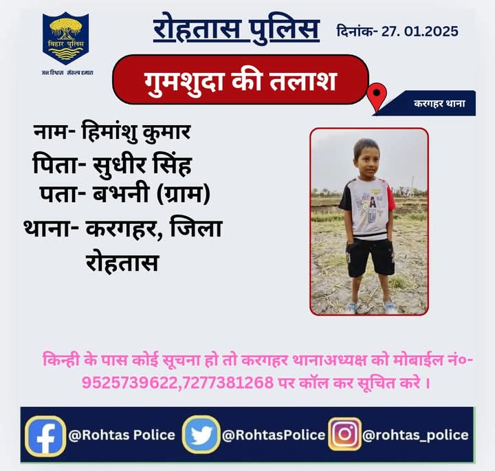 थानाध्यक्ष विजय कुमार ने बताया कि लापता बच्चा की खोज में पुलिस तेजी से कार्य कर रही है ।