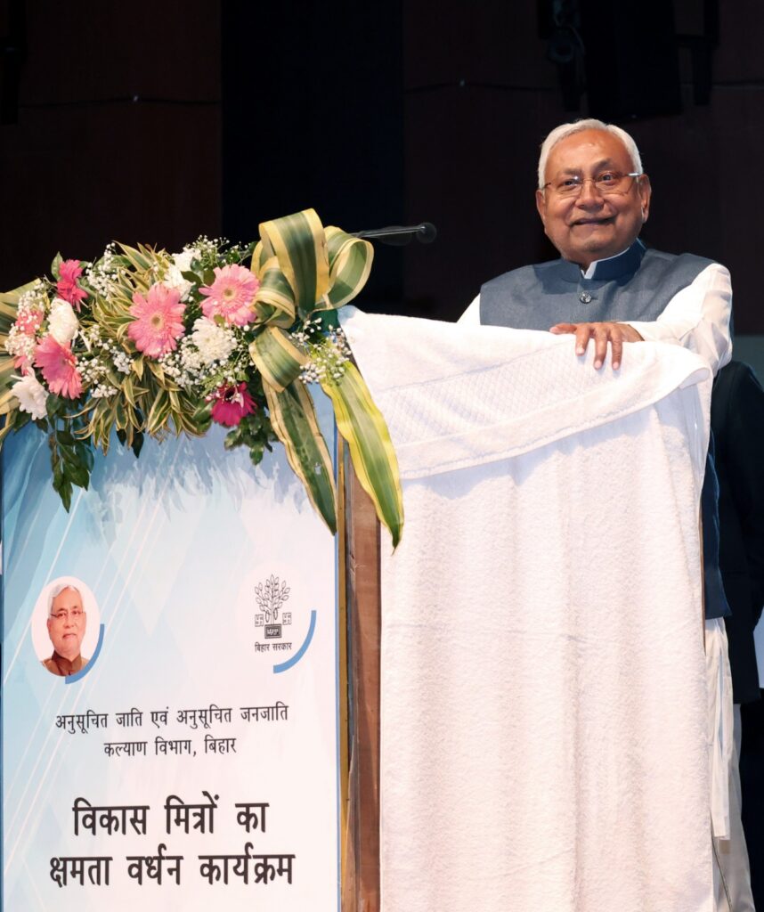 महादलित वर्ग तक सरकारी योजनाओं का लाभ पहुंचाने के लिए वर्ष 2009 में बिहार महादलित विकास मिशन की स्थापना की गई, जिससे महादलित वर्ग के लोगों को काफी लाभ हो रहा है। उन्होंने कहा कि वर्ष 2023 में विकास मित्रों के मानदेय को 13 हजार 700 रूपये से बढ़ाकर 25 हजार रूपये कर दिया गया और प्रति वर्ष उसमें 5 प्रतिशत की वृद्धि की जा रही है।मुख्यमंत्री ने कहा कि अनुसूचित जाति एवं अनुसूचित जनजाति वर्ग के उत्थान के लिए कई महत्वपूर्ण योजनाएं चलाई जा रही हैं। वर्ष 2018 में अनुसूचित जाति एवं अनुसूचित जनजाति वर्ग के युवक एवं युवतियों के रोजगार को लेकर ‘उद्यमी योजना’ की शुरुआत की गई। इस योजना के तहत उद्योग लगाने के लिए 10 लाख रुपये की सहायता दी जा रही है जिसमें 5 लाख रुपये का अनुदान एवं 5 लाख रुपया ब्याज मुक्त ऋण के रूप में उपलब्ध कराया जा रहा है। इस वर्ग के युवक एवं युवतियों को ‘सिविल सेवा प्रोत्साहन योजना’ का लाभ मिल रहा है। युवकों को रोजगार उपलब्ध कराने के लिए ‘मुख्यमंत्री ग्राम परिवहन योजना’ की शुरुआत की गई है।