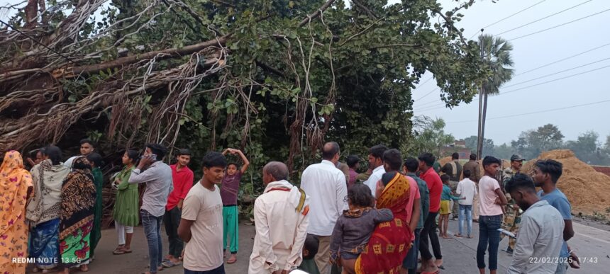 शनिवार को पडरिया स्थित NH-2C पर एक विशाल बरगद का पेड़ अचानक सड़क पर गिर गया, जिससे वहां से गुजर रहा एक ई-रिक्शा पूरी तरह पेड़ के नीचे दब गया। गनीमत रही कि रिक्शा में सवार सभी लोग समय रहते बाहर निकल गए, जिससे एक बड़ा हादसा टल गया।घटना की जानकारी मिलते ही अमझोर थाना पुलिस मौके पर पहुंची। वहीं, सरैया पंचायत के मुखिया संजय चौधरी और उप मुखिया अमित गुप्ता ने ग्रामीणों के सहयोग से तुरंत पेड़ को कटवाने का कार्य शुरू करवाया। स्थानीय लोग भी इस कार्य में बढ़-चढ़कर मदद कर रहे हैं ताकि जल्द से जल्द रास्ता साफ हो सके और यातायात सुचारू हो जाए।घटना के बाद सड़क पर कुछ समय के लिए जाम की स्थिति बनी रही, लेकिन प्रशासन और ग्रामीणों की तत्परता से स्थिति को नियंत्रित कर लिया गया। प्रशासन ने लोगों से अपील की है कि बारिश और आंधी-तूफान के मौसम में पुराने और विशालकाय पेड़ों के नीचे खड़े होने या वहां से गुजरने में सतर्कता बरतें।
