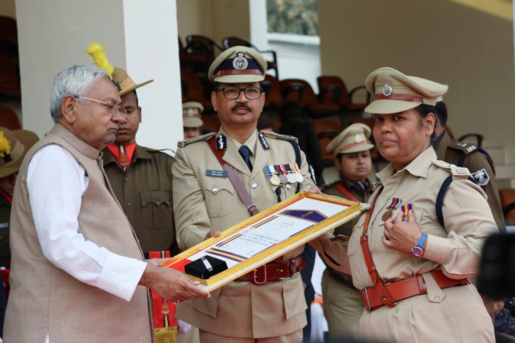साथ ही उत्कृष्ट कार्य के लिए राष्ट्रपति द्वारा विशेष पदक से सम्मानित बिहार विशेष सशस्त्र पुलिस के महानिदेशक श्री अमरेंद्र कुमार अंबेडकर, राष्ट्रपति विशिष्ट सेवा पदक से सम्मानित अपर पुलिस महानिदेशक (प्रशिक्षण) श्रीमती आर० मलारविझी, राष्ट्रपति विशिष्ट सेवा पदक से सम्मानित सेवानिवृत पुलिस निरीक्षक, अपराध अनुसंधान विभाग बिहार श्रीमती सुनीता कुमारी, पुलिस अवर निरीक्षक श्री रामानुज राम को मुख्यमंत्री ने सम्मानित किया।