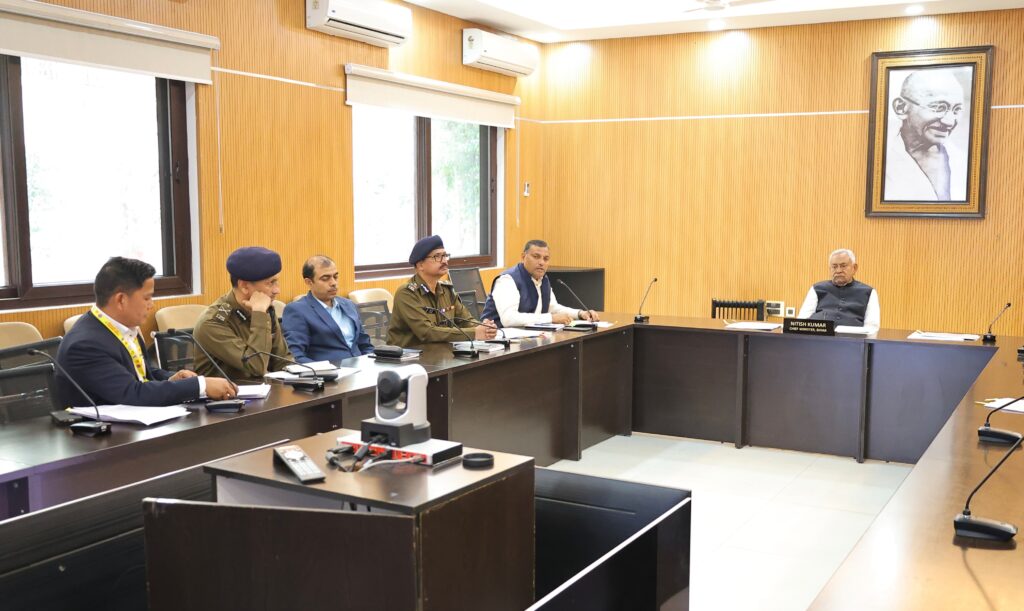 पटना :- मुख्यमंत्री श्री नीतीश कुमार ने आज 1 अणे मार्ग स्थित ‘संकल्प’ में मद्य निषेध तथा विधि व्यवस्था की उच्चस्तरीय समीक्षा बैठक की। बैठक में पुलिस महानिदेशक तथा मद्य निषेध, उत्पाद एवं निबंधन विभाग के अधिकारियों ने मुख्यमंत्री को अद्यतन विधि व्यवस्था एवं शराबबंदी को बेहतर ढंग से लागू करने को लेकर किये जा रहे कार्यों के संबंध में विस्तृत जानकारी दी।