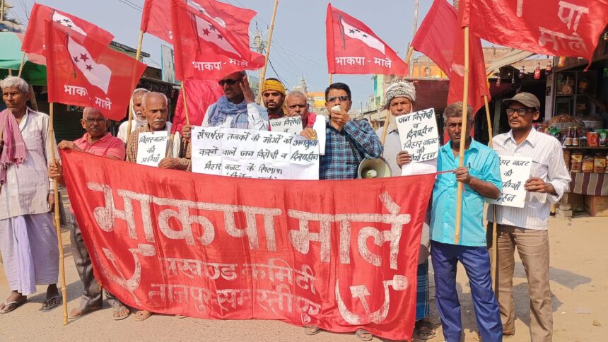 ताजपुर/समस्तीपुर भाकपा माले के राज्यव्यापी विरोध दिवस के तहत शुक्रवार को जुलूस निकालकर बजट का प्रति जलाया।इससे पूर्व झंडा, बैनर एवं मांगों से संबंधित नारे लगाते हुए भाकपा माले कार्यकर्ताओं ने गांधी चौक से जुलूस निकालकर बाजार भ्रमण के पश्चात पुनः गांधी चौक पहुंचकर जुलूस सभा में तब्दील हो गया। सभा को प्रखंड कमिटी सदस्य ब्रह्मदेव प्रसाद सिंह, राजदेव प्रसाद सिंह, संजीव राय, जवाहर सिंह, सुखदेव सिंह, रवींद्र शर्मा, सुनील शर्मा, संजय कुमार, उपेंद्र शर्मा, मकसुदन सिंह, मो० सयूम आदि ने सभा को संबोधित कियाअपने अध्यक्षीय संबोधन मेंभाकपा-माले प्रखंड सचिव सुरेंद्र प्रसाद सिंह ने कहा कि बिहार में भाजपा-जदयू के डबल इंजन सरकार के बजट में जनता के बुनियादी सुविधा शिक्षा, स्वास्थ्य, रोजगार, पानी, बिजली सड़क, महंगाई, बेरोजगारी के सवाल पर बजट में चुपी साध लिया गया है। बजट में भारी कटौती किया गया है। वहीं बिहार में संघर्षरत तबका आशा, रसोईया, सेविका- सहायिका, कुरियर, ममता, जीविका, सफाईकर्मी, अनुरक्षक, विद्यालय प्रहरी आदि के मांगों को अनसुना कर दिया गया है। उन्होंने आउटसोर्सिंग पर काम कर रहे लाखों-लाख स्कीम वर्कर को सेवा स्थाई करने और प्रतिमाह 26 हजार रुपए मानदेय भुगतान करने की मांग किया। माले नेता ने कहा कि भाकपा माले के विधायक दल जनविरेधी बजट और बढते आपराध, महिलाओं, बच्ची के साथ दुष्कर्म- हत्या के खिलाफ विधानसभा में विरोध की आवाज बुलंद कर रहे हैं तो दूसरी ओर सड़क पर भाकपा माले आन्दोलन कर रही है।सभा को संबोधित करते हुए भाकपा माले प्रखंड कमिटी सदस्य सह खेग्रामस प्रखंड सचिव प्रभात रंजन गुप्ता ने कहा कि माइक्रोफाइनेंस कंपनियों से जुड़ी महिलाओं का कर्ज माफ करने, 95 लाख गरीब परिवारों को स्वरोजगार योजनानुसार 2-2 लाख रुपए देने औरजमीन-आवास उपलब्ध कराने, खूनचूसक स्मार्ट मीटर पर रोक लगाने, बिजली बिल माफ करने की मांग की।सभा को संबोधित करते हुए भाकपा माले प्रखंड कमिटी सदस्य सह अखिल भारतीय किसान महासभा के प्रखंड अध्यक्ष ब्रह्मदेव प्रसाद सिंह ने थूककांड के आरोपी ताजपुर बीडीओ गौरव कुमार को स्थानांतरित करने की मांग की।