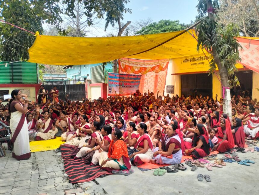बिहार राज्य आंगनबाड़ी कर्मचारी संघ के बैनर तले प्रखंड की आंगनवाड़ी सेविका सहायिका ने 5 सूत्री मांग को लेकर बाल विकास परियोजना कार्यालय के आगे नारेबाजी के साथ प्रदर्शन किया। संघ के प्रखंड अध्यक्ष कृष्णा कुमारी प्रखंड सचिव किरण राय ने संयुक्त रूप से बताया कि एफ आर एस से उत्पन्न समस्याओं के विरोध में 20 मार्च 25 को एकदिवसीय धरना प्रदर्शन किया गया है प्रमुख मांगों में सेविका सहायिका की सेवा का सरकारी करण गुजरात हाई कोर्ट के निर्णय के आलोक सरकारी कारण सर्वोच्च न्यायालय के आदेश अनुसार ग्रेच्युटी लागू हो पोषण कार्य करने के लिए नए मोबाइल सेट की मांग आदि शामिल । महिलाओं की एक शिष्टमंडल मंडल ने बाल विकास परियोजना पदाधिकारी को मांगों का ज्ञापन दिया।